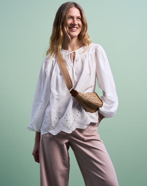 Pair Summery tops and blouses with a lighter wash jeans and denim. Avoid dark wash colours at all costs as you tend to overheat easier when wearing darker shades. Light blue, white and cream jeans pair well with florals and bright Summer tones. Skinny or slim fit jeans will only make you hotter whereas a looser fit like a mom jean or a straight leg is perfect for everyday ease in the sun. For the fashion conscious, barrel and wide leg fits are trendy but equally as covered as well as balancing your silhouette.