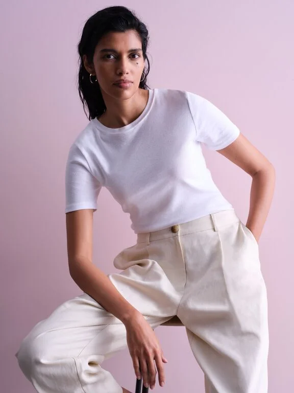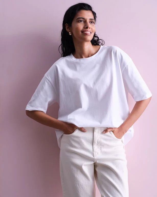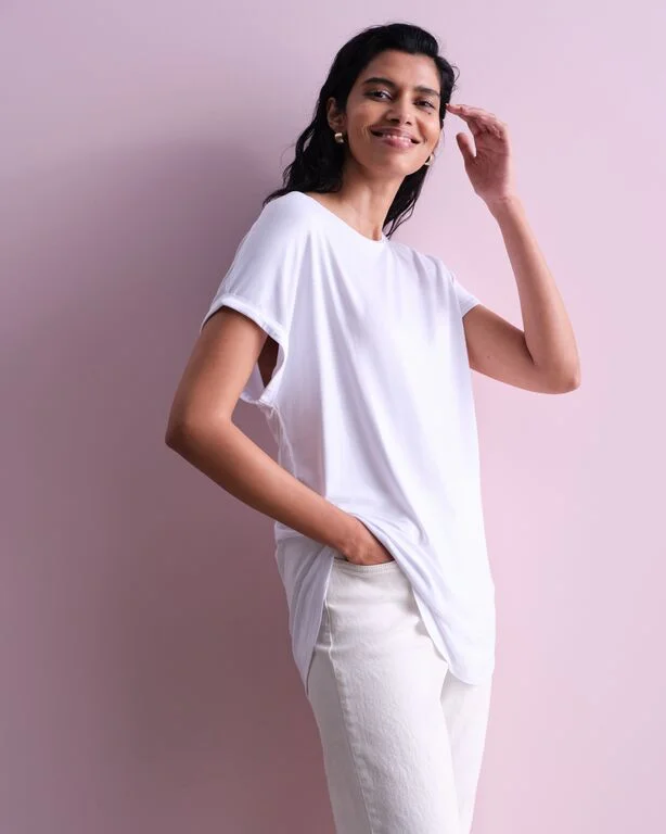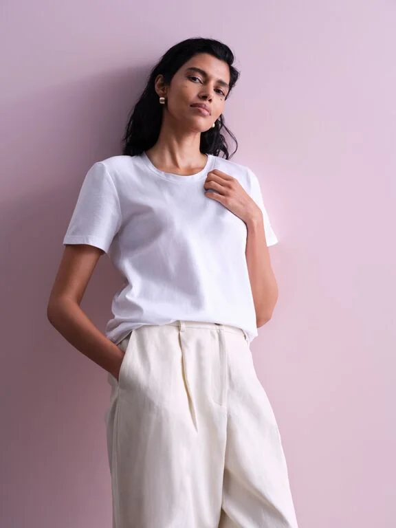 For those feel-good, look-polished moments, the fitted t-shirt offers a sleek, streamlined silhouette that's versatile and flattering without clinging. It’s perfect for days when you want to dress up, but not too much. Pair it with looser fit jeans, tailored trousers or wide leg styles for an effortless look.